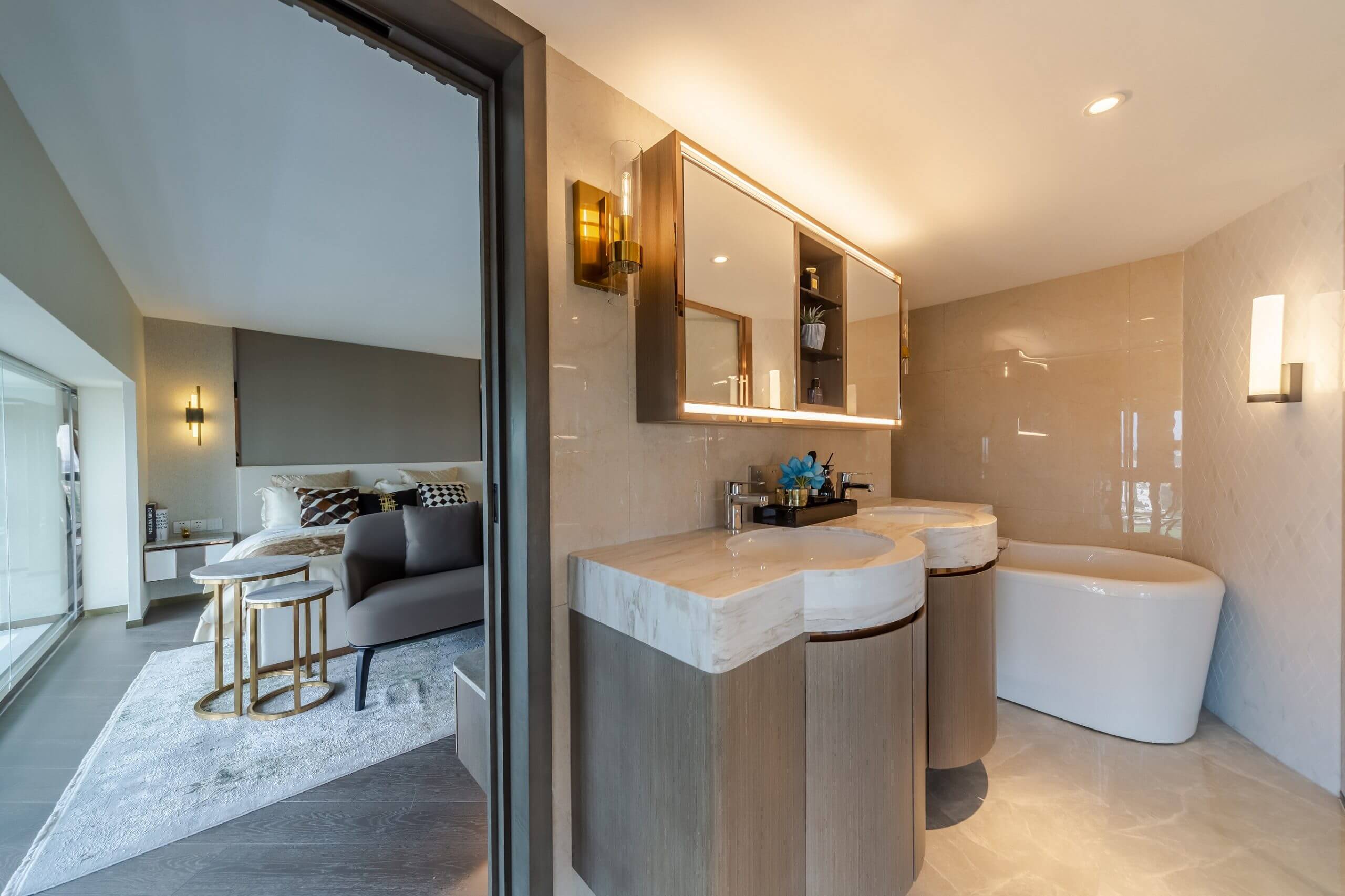 This case runs through the whole with a modern and fashionable design concept. The colors and lines are very concise and neat. With the large floor-to-ceiling glass, a large amount of natural light is slowly spilled into the interior, giving people a stylish and warm home life experience, and also highlights the modern people. Attitude towards life.