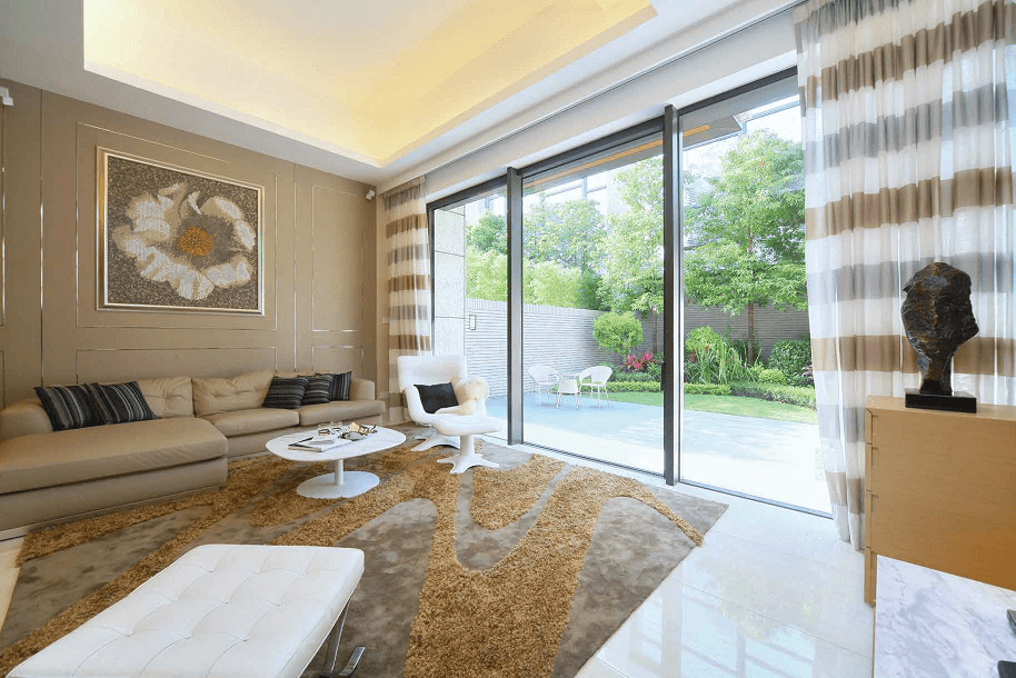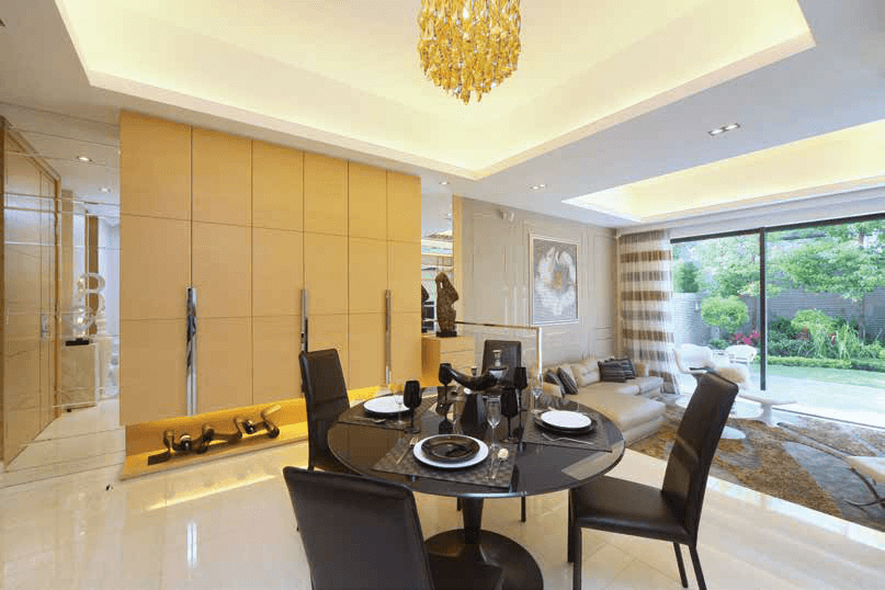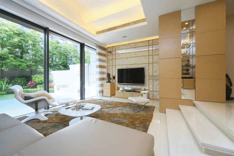 回歸大自然的懷抱,是何等幸福快樂!鳥語花香,工作壓力一掃而空。此案屋主崇尚自然的生活調子,獨立屋毗連花園打理得井井有條,樹林與草坡交織一幅高低有序的翠綠景致,綠意盎然,令人心曠神怡。自然暢泰的氛圍延伸入屋,全屋以木料為家具元素,啡木飾牆與儲物櫃遍佈廳區,電視背牆裱貼樹枝交疊的啡黃牆紙,地面鋪設一張泥黃色的地氈,啡與綠色予人清新舒適的感覺,平靜心靈,生活無拘無束。