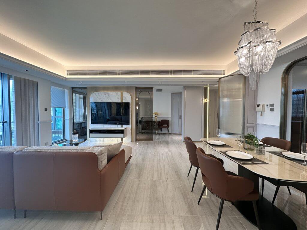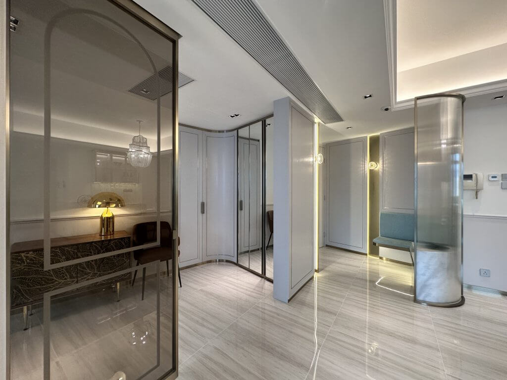 設計運用歐式花線,米白色調,大地色雲石,粗金鋼及不同的水晶燈,帶出 現代經典 古味 時尚韻味。