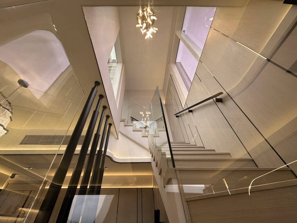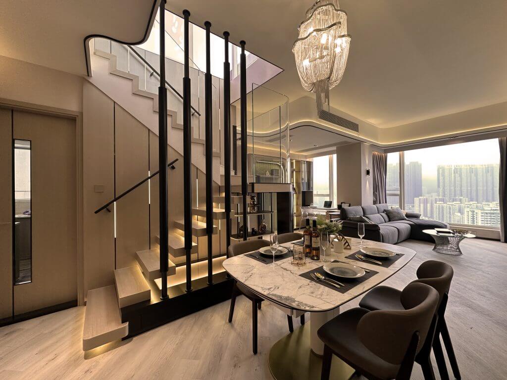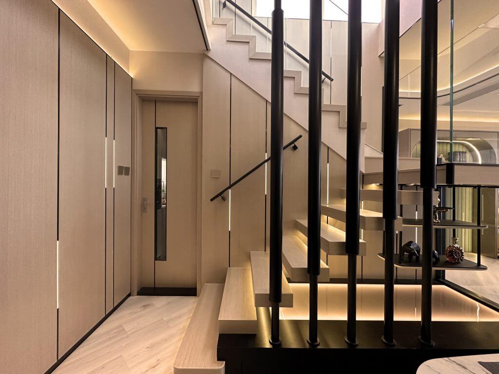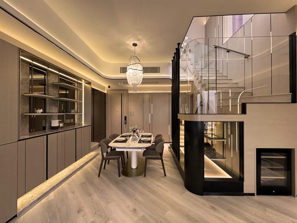單位最大特色是設計師為樓梯改建為 懸浮樓梯設計,配合不同滲光及燈光效果,