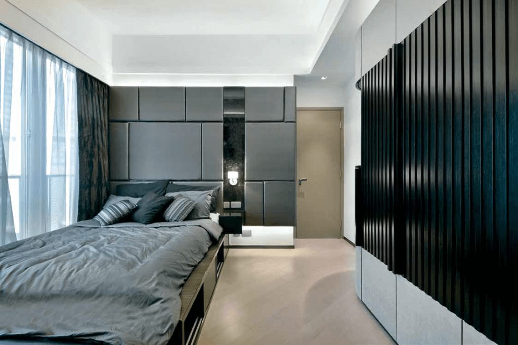 遊走於優雅與玩味之間,夫婦與兩位年幼女兒的安樂窩,氛圍營造考慮全面。這所面積較細的相連單位約1,200呎左右,間隔突兀,更備設多幅落地玻璃窗,實牆位有限,反能啟發設計師天馬行空的創念。兩組由玫瑰金條拼湊的屏風對向而置,分別充當電視背靠飾面,及分隔客飯廳用途,無阻空間及光源滲透,更是優雅高貴的點綴元素。配合來自意大利的水晶吊燈,及圖案繽紛的捫布抽屜櫃,脫俗氣派無法可擋。廳中吊置 Ball Chair 及女兒房間的Balloon 燈飾,則糅合玩味。