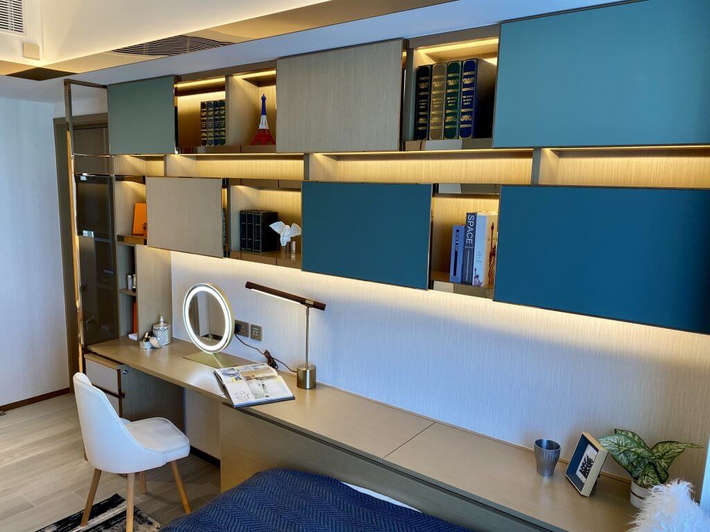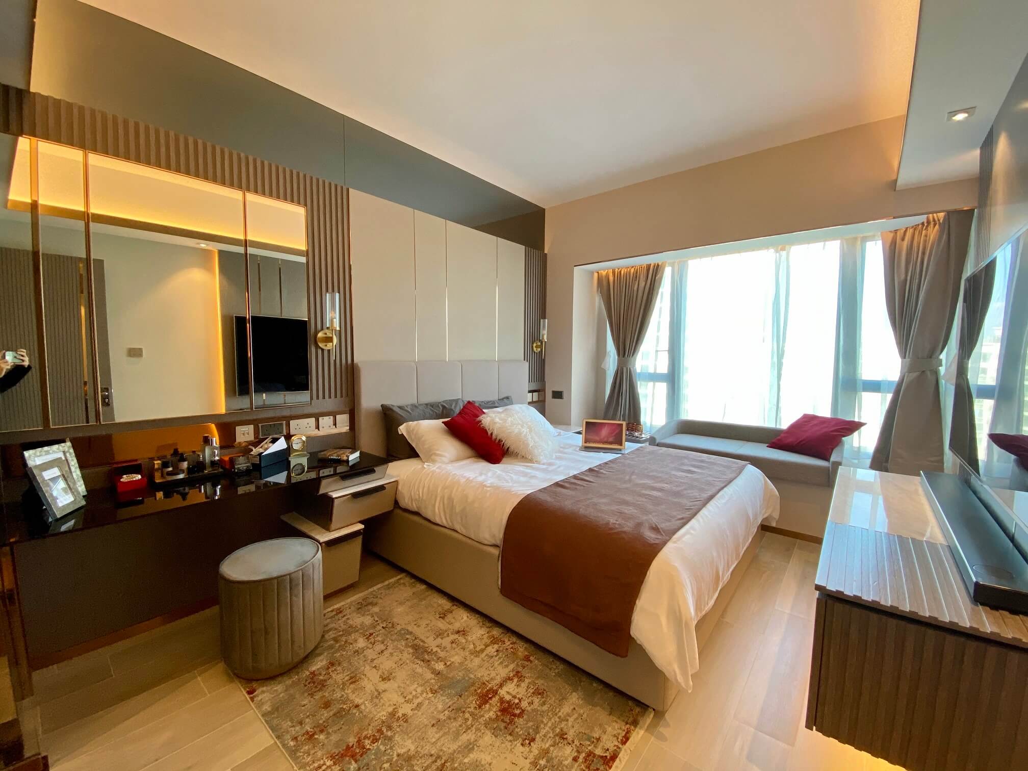 整各單位配搭了各種不同的物料,包括雲石、金屬、木材和捫皮等,塑造出高貴的感覺。要突顯一個單位的高雅貴氣,雲石或大理石絕對是大家的不二之選。設計師在這個位於白石角天賦海灣的單位裡就在不同色位置上運用了雲石,它獨特的紋理都能讓整個空間變得更為大氣時尚。
