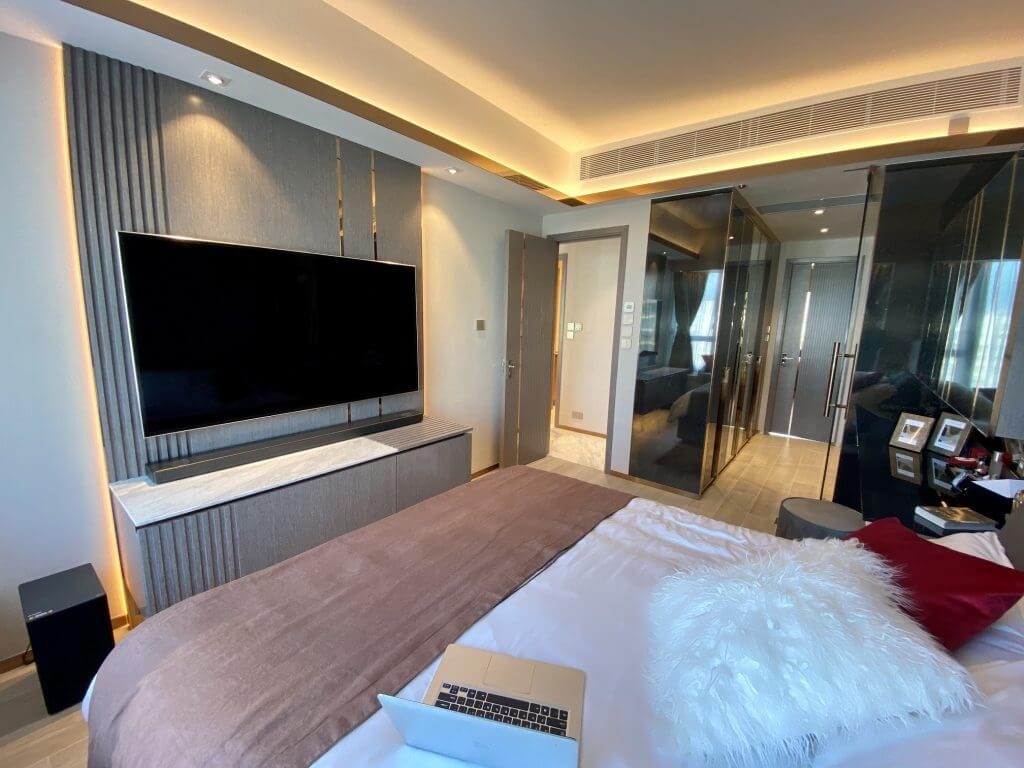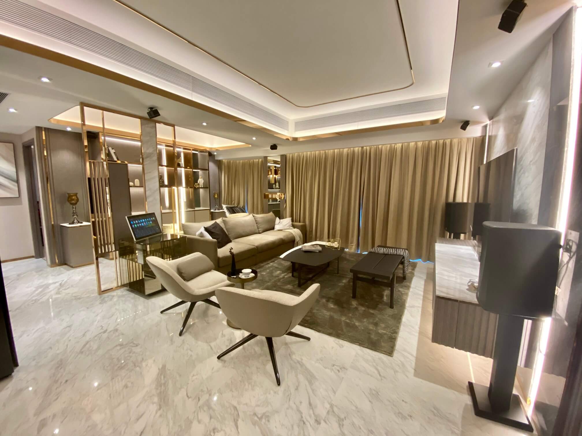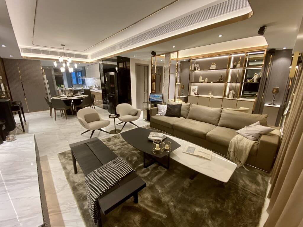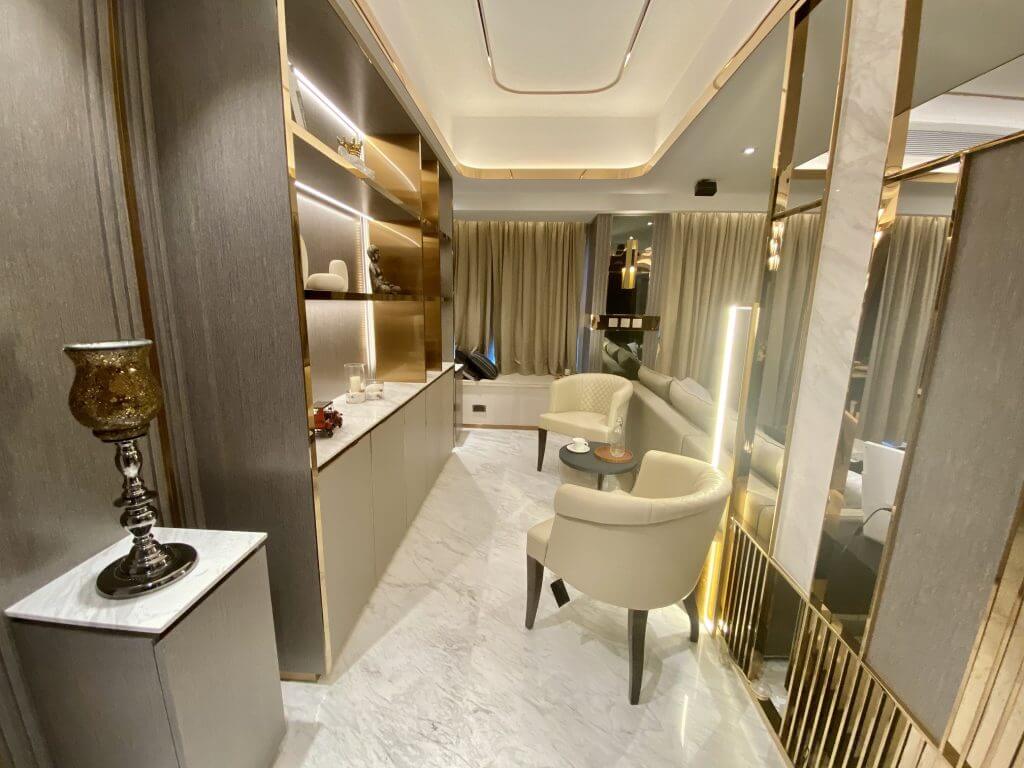 除了雲石,金鋼的運用亦覆蓋全屋不同的角落,如天花、屏風及牆身設計均運用了適量金鋼,為單位添上優雅而不俗氣的質感。