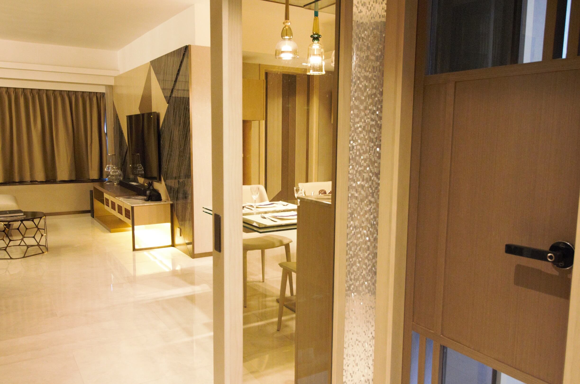除了貓屋,攀爬架及貓咪專用門,玄關位置更用了特色玻璃趟門防止貓貓跟着直接衝出家門。全屋又採用了防滑地磚,天花吊燈更採用了St Louis 今年新款水晶燈。