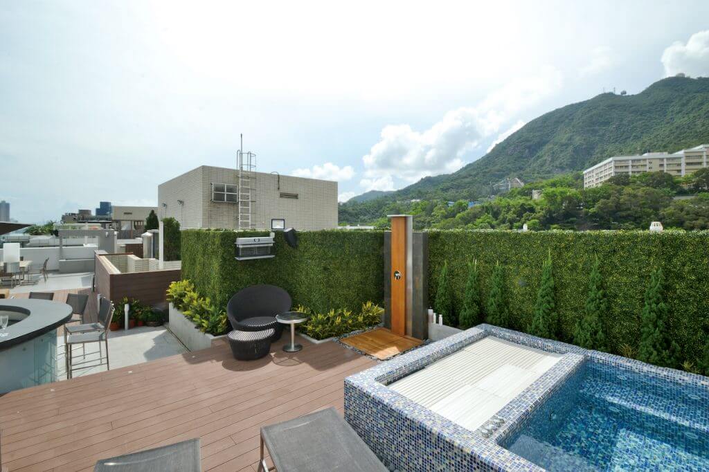廚房亦利用玻璃引入充沛光線,當趟開玻璃門達致裡外連貫,擴闊空間。作開放式規劃的廚房極具空間感,工作檯面以黑色人造石焗漆的全高櫃搭配啞色木飾面地櫃,效果稍作變化。房間突顯獨特個性,女兒房以木色作主導,床頭牆以松木飾面更延伸至天花加入霓虹燈點綴。