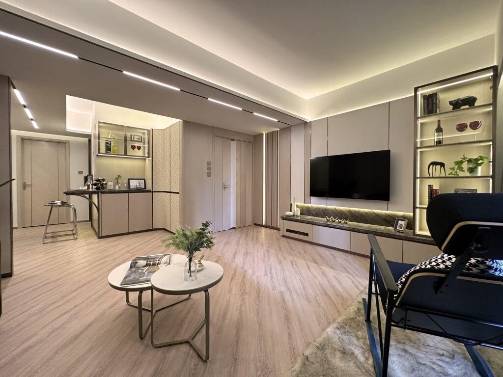 設計方面採用現代簡約風格打造,主要用色以木紋和木色作為主題色調。