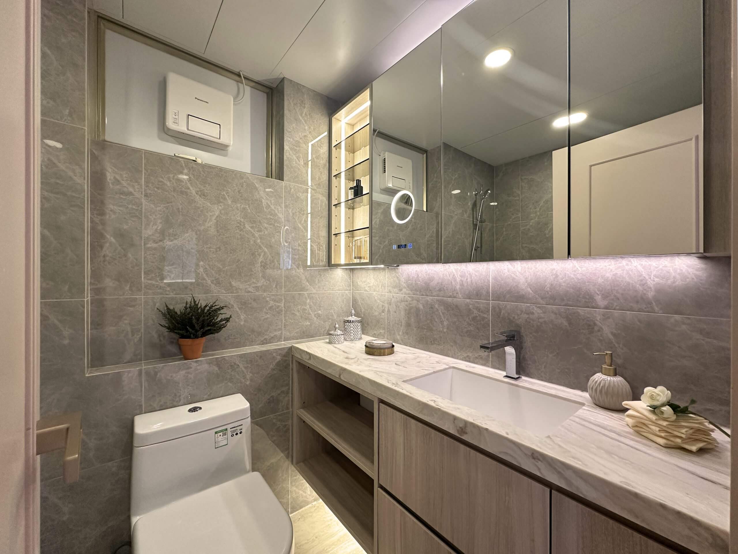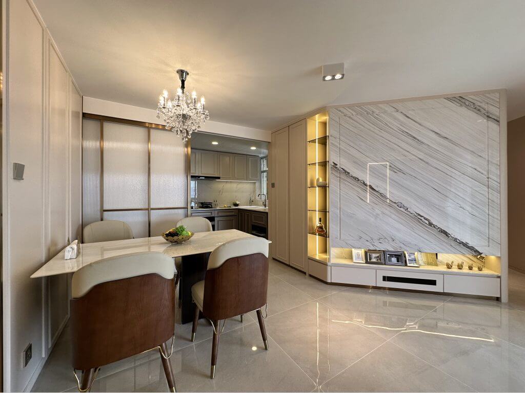 將大大提升了整體質感及特色,與全屋互相呼應。適當的留白,金屬元素,紋理感的大理石各材質互相融合,