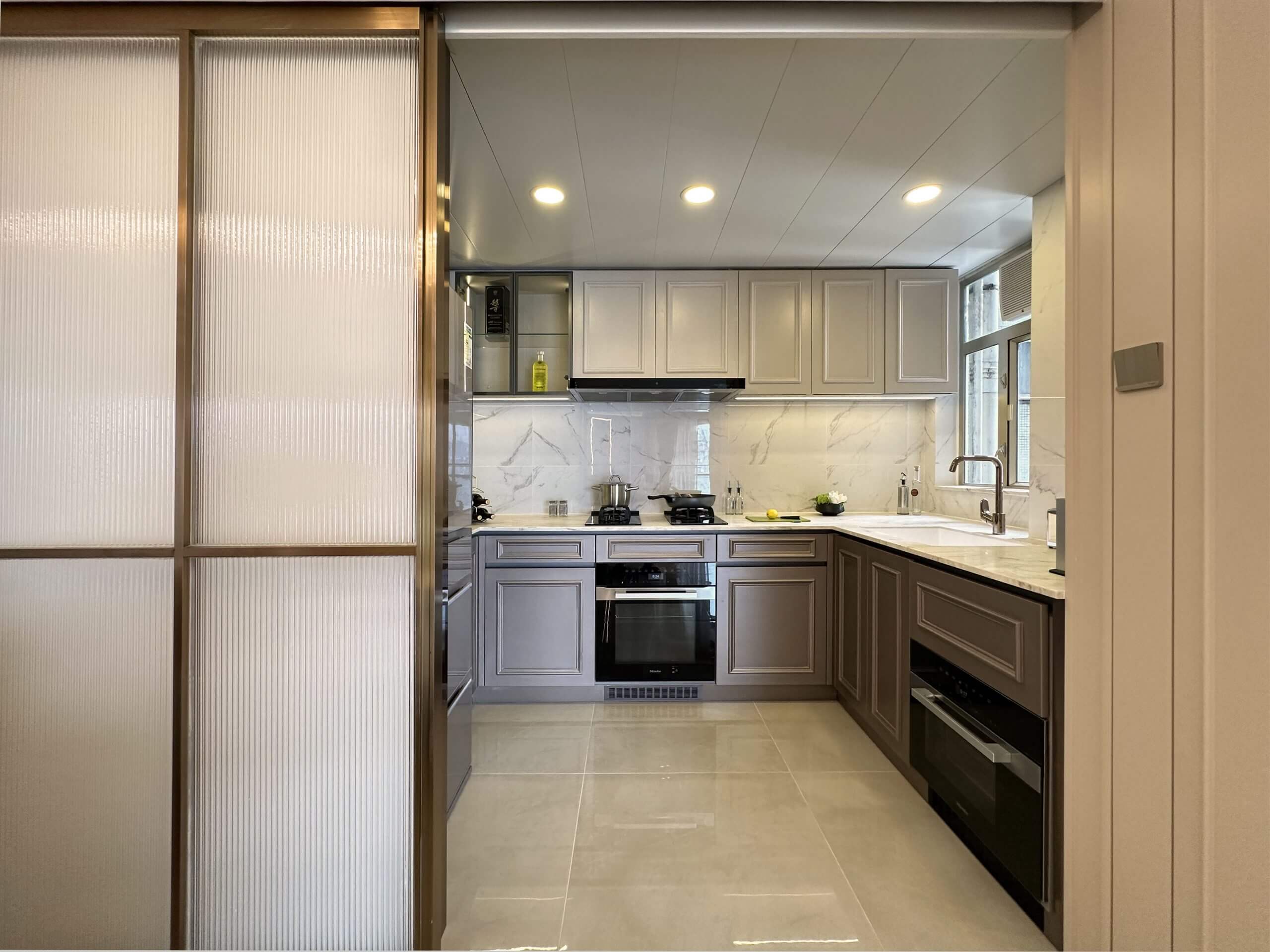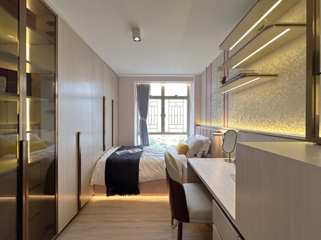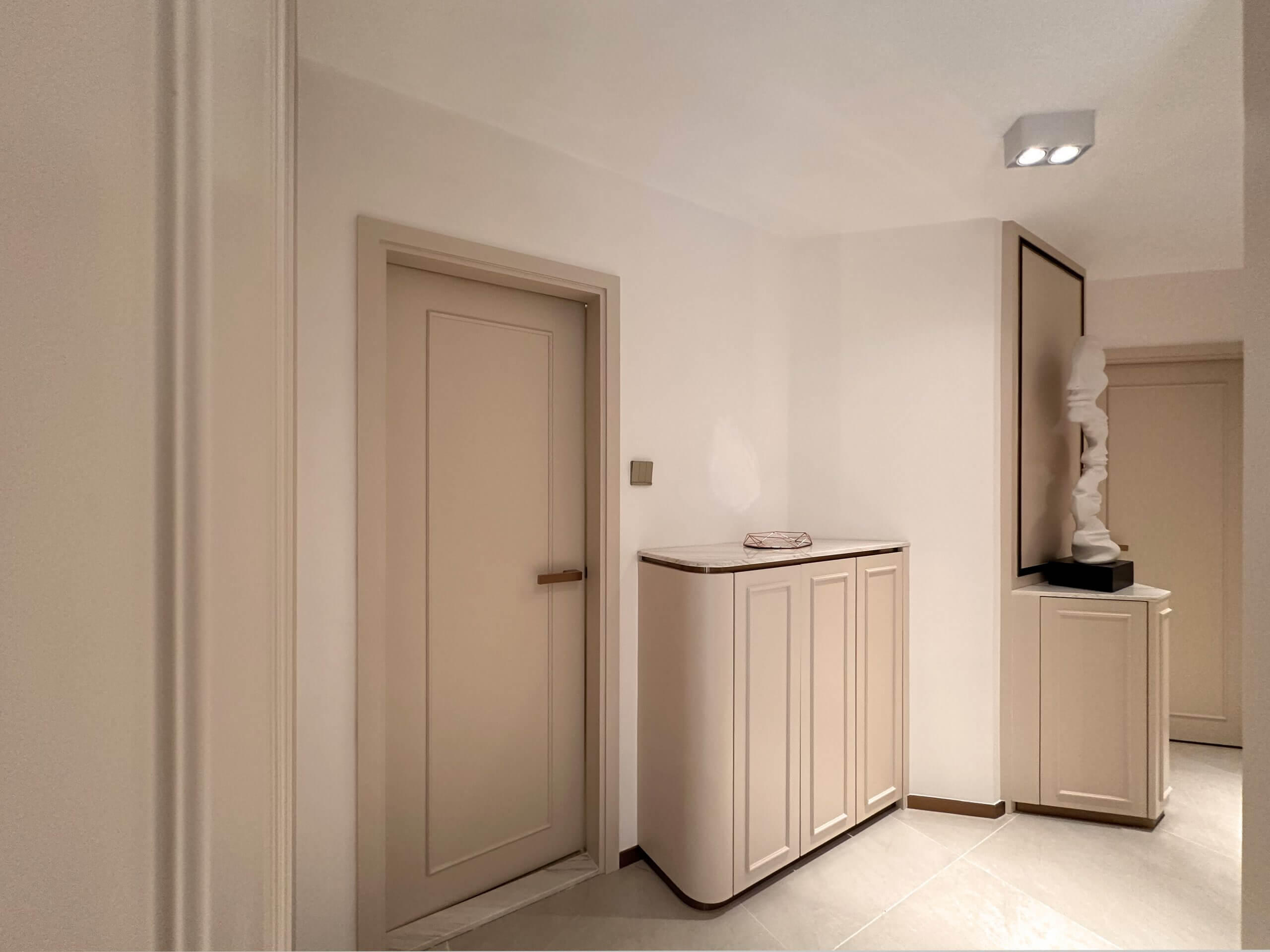 整體設計以淺色系作為主調,運用歐式花線配上玫瑰金鋼作點綴,簡潔之中又帶有一絲奢華的感覺。