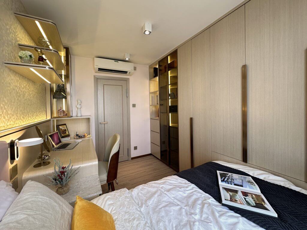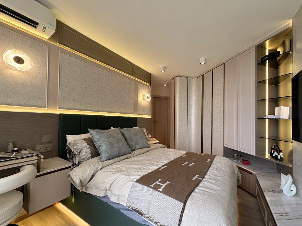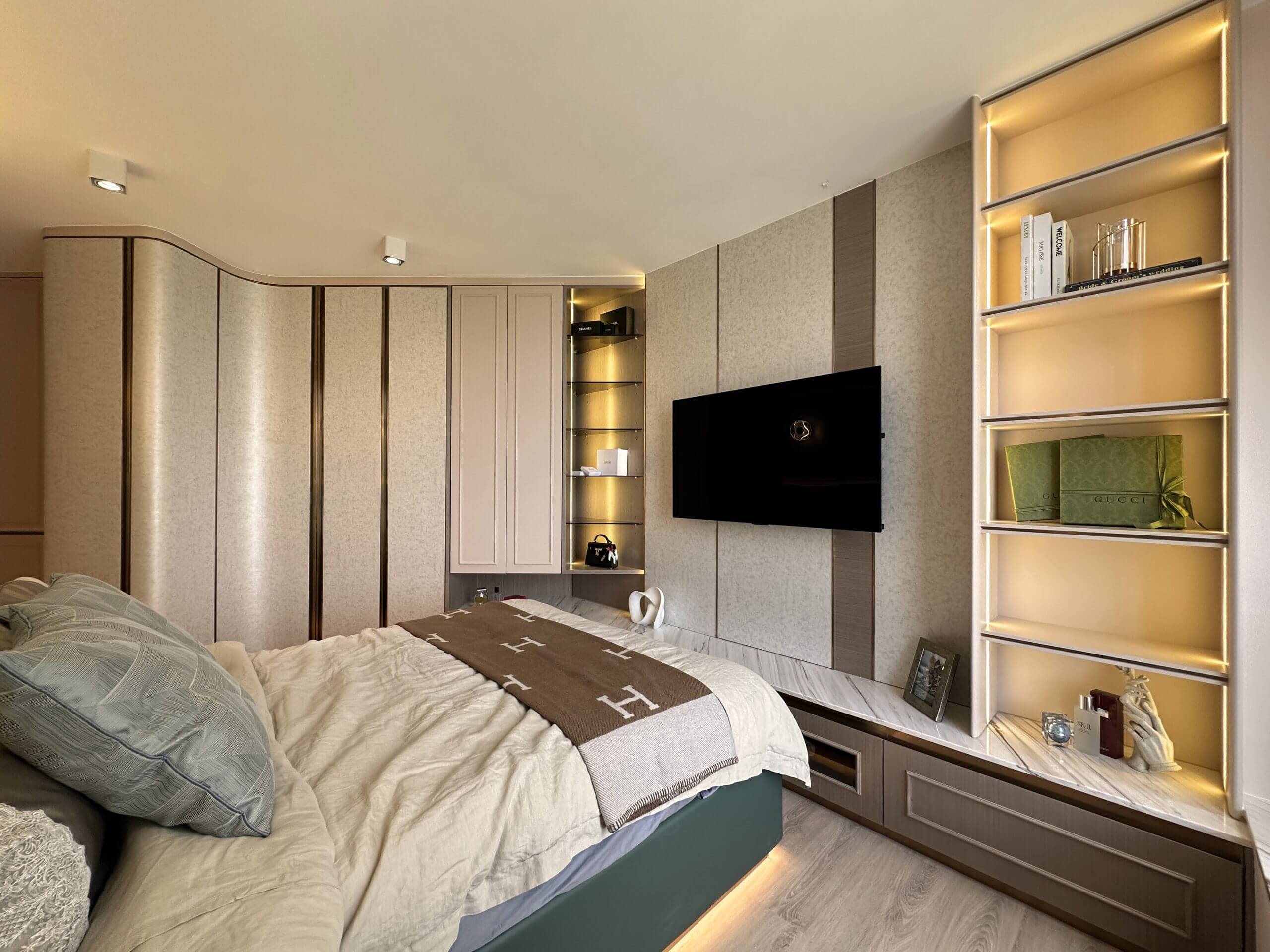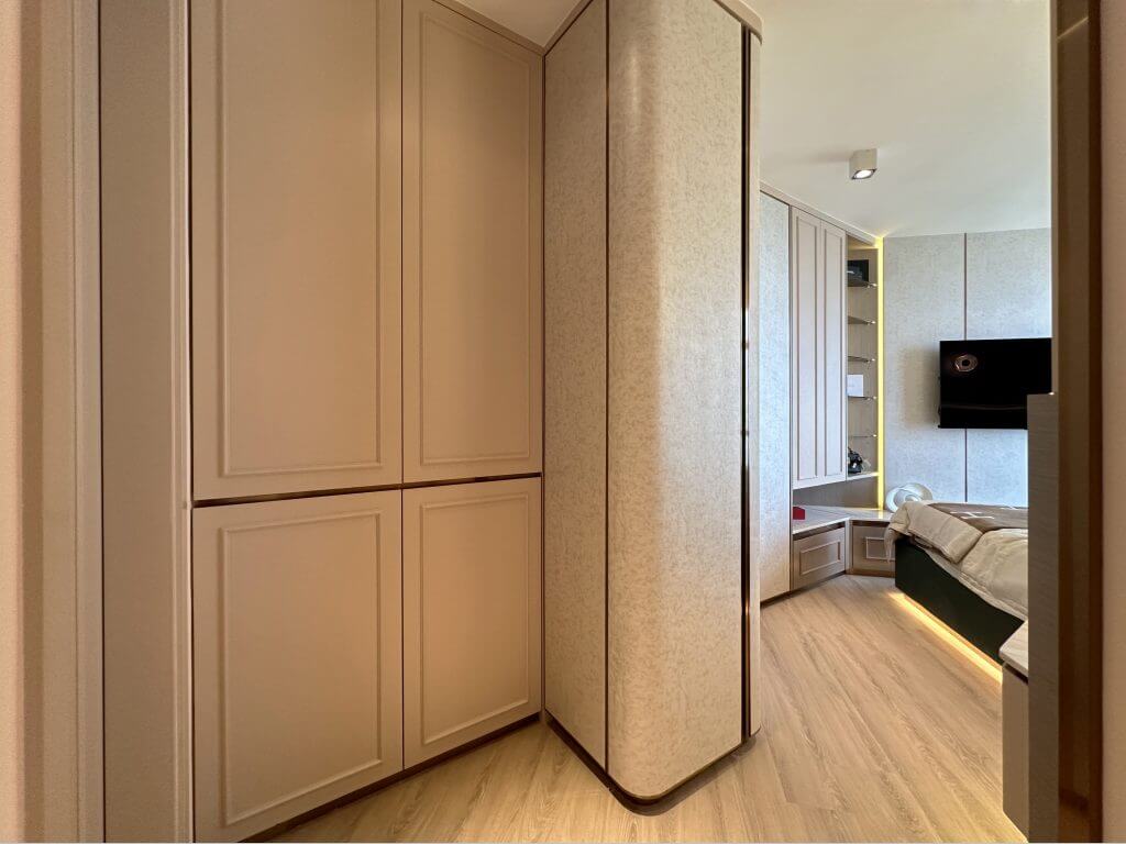 整體設計以淺色系作為主調,運用歐式花線配上玫瑰金鋼作點綴,簡潔之中又帶有一絲奢華的感覺。