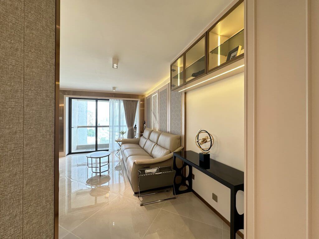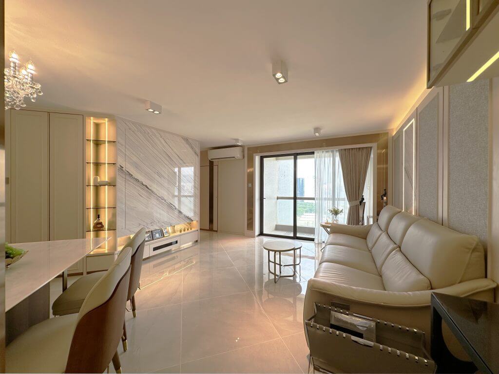 營造出輕奢舒適又不失藝術的設計氛圍感!設計師在客廳的空間設計也獨具匠心,巧妙運用空間佈局,