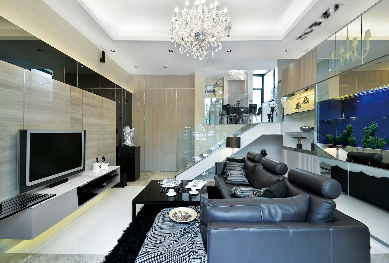 本案交织着各种线条如波浪形玻璃围栏,给三维空间注入视觉动感。再配合华贵精致的材质,呈现一种沉静高雅的意态。